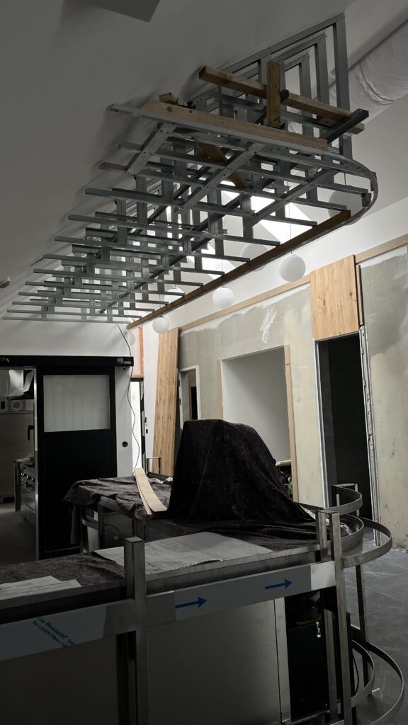 Na místě jsme konstrukci ukotvili a podhled natáhli. Díky předvýrobě šla instalace plynule a bez zbytečných prostojů.